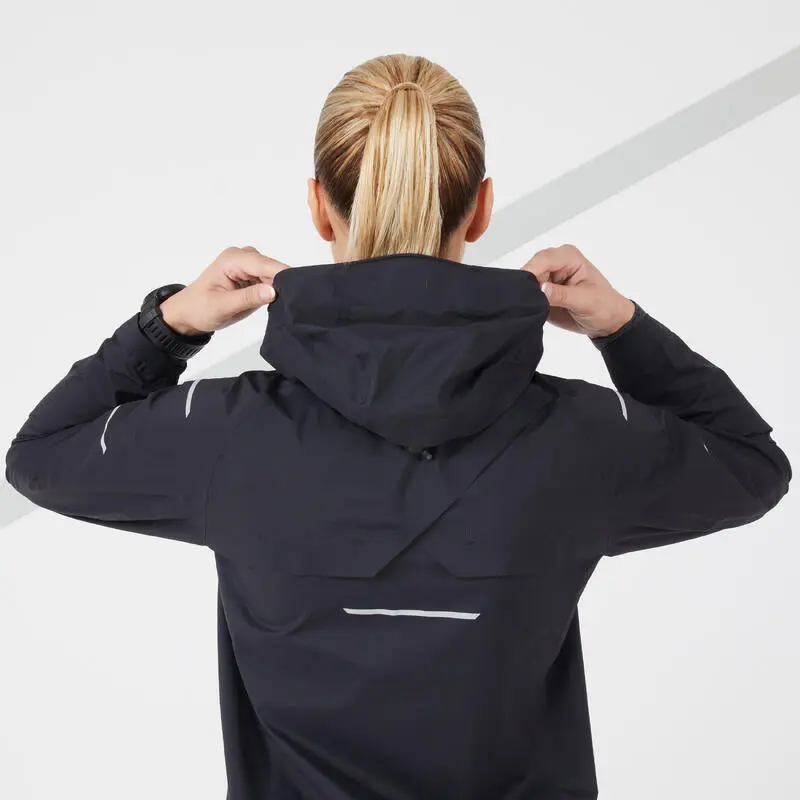CHAQUETA DE RUNNING MUJER IMPERMEABLE CORTAVIENTO – KIPRUN RAIN+ NEGRO