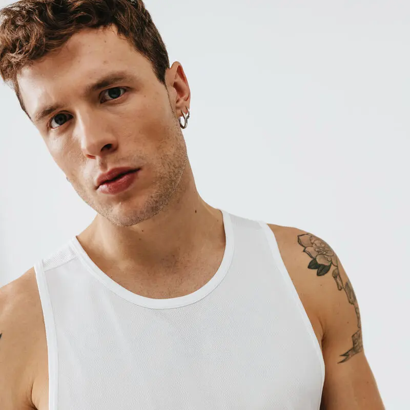 Kalenji Camiseta Running Dry Hombre Blanco Sin Mangas Transpirable