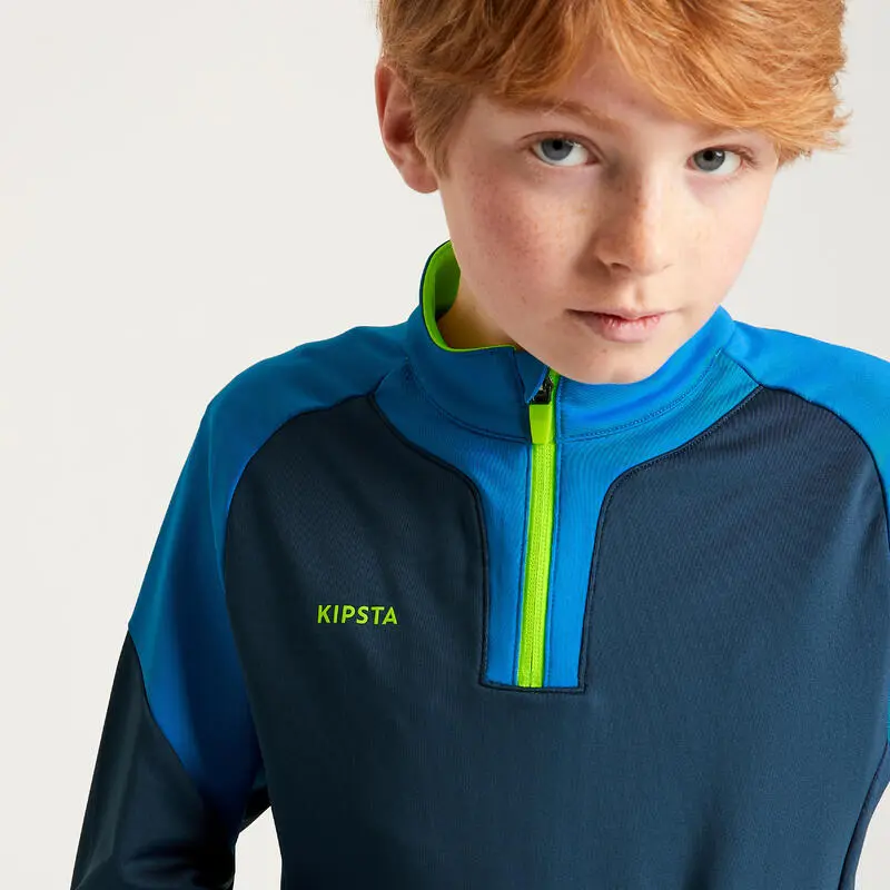 Kipsta Sudadera De Fútbol 1/2 Cremallera VIRALTO SOLO JR NIÑOS Azul, Gris Amarillo Fluo