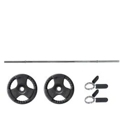 Compra en Decathlon Kit Barra De Musculación + Discos 46 KG ( 25mm) VIMAS SPORT Kit de musculación compuesto por una barra de 1,5m de 6 kilos de peso y dos discos de 20kilos. Incluye dos pinzas de cierre.