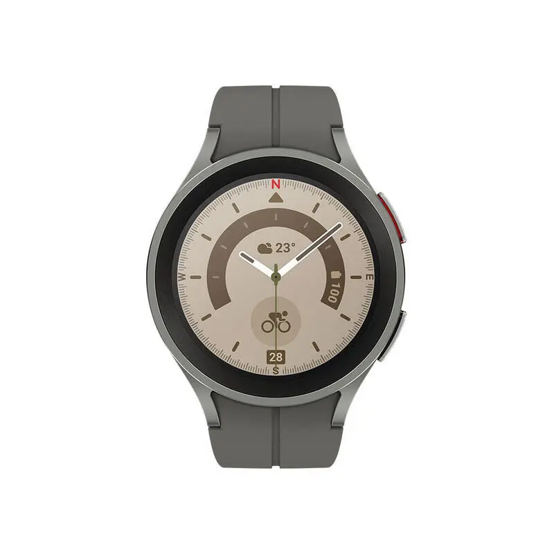 Compra en Decathlon Reloj inteligente Samsung Galaxy Watch5 Pro 45mm BT Gray Titanium Compra ya tu Samsung Galaxy Watch5 Pro, pantalla de cristal de zafiro con 1.6 veces más resistente ante roturas, seguimiento de rutas por GPS para ciclismo y senderismo con un 13% más de batería.
